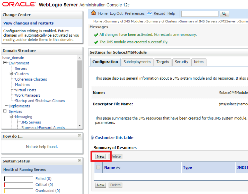 To change a WebLogic Application Server from using a plain text connection to a secure connection, first the Solace event broker configuration must be updated as outlined in above and the Solace JMS configuration within the WebLogic Application Server must be updated as outlined in above.